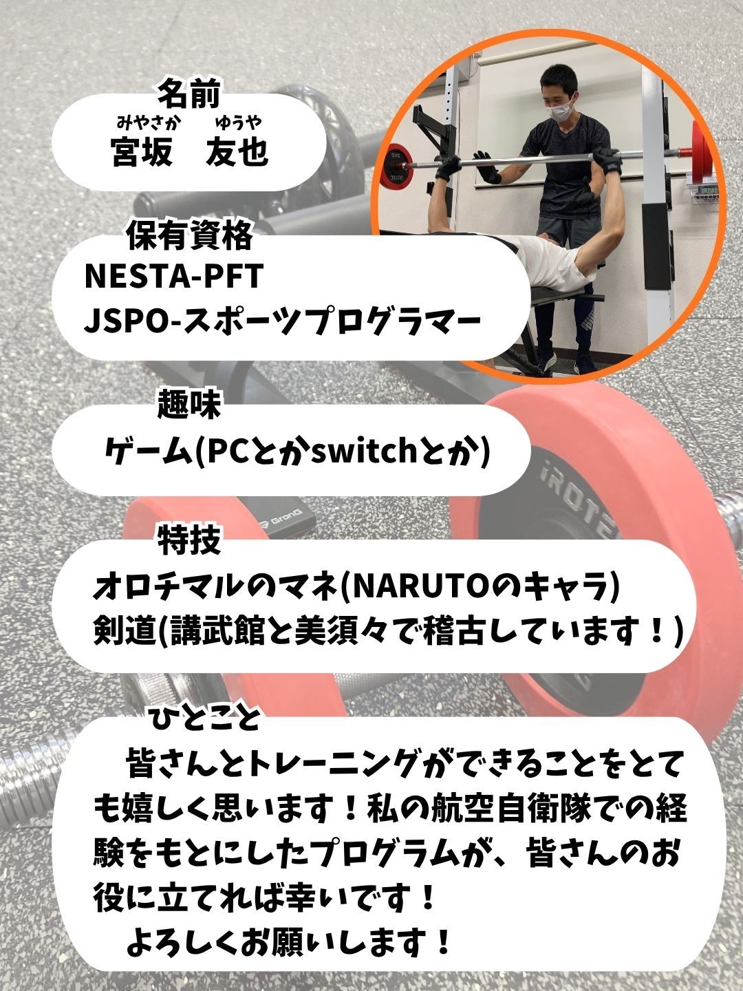 実際にプログラムを体験していただきます。運動経験なし、筋トレ経験なしでも大丈夫!少しずつ慣れていきましょう!
