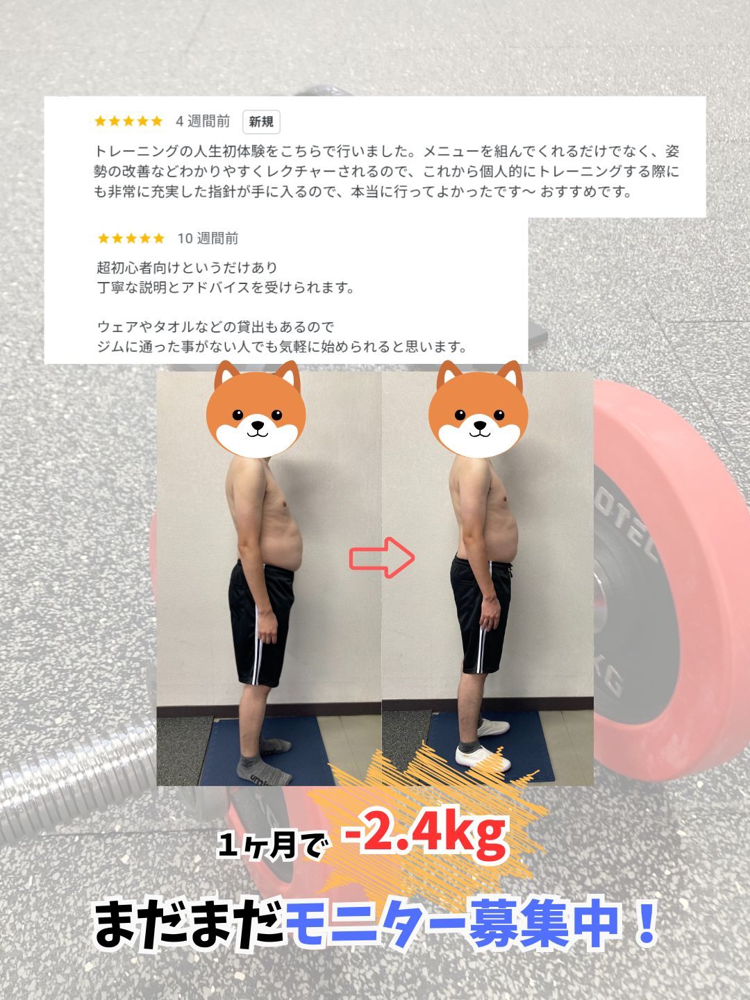 それぞれの事情に合わせ、自宅でもできるトレーニングもやっていきます。また、1人で24時間ジムに行けるようになるサポートもしています。